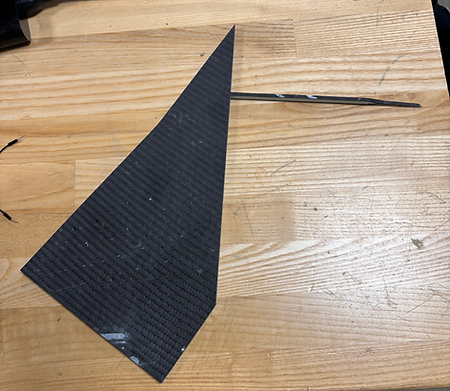 Once the blank was fabricated and removed from the vacuum bag, we were able to actually machine the fins. This involved using a waterjet to cut the outline of the fin (seen on the right and below) and subsequently using a CNC mill to achieve correct bevel on the fins for most appropriate flight. During this time, I handled a compressed manufacturing schedule resulting from supply-chain delays beyond the team's control and unexpected machine maintenance.